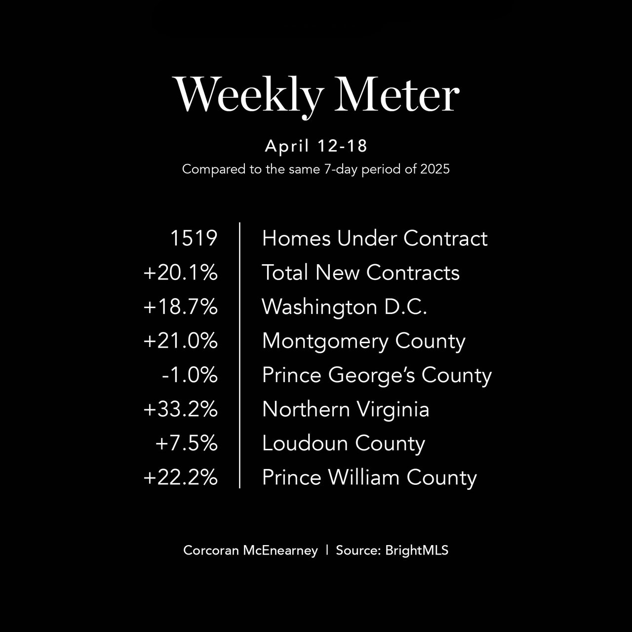 After last week’s holiday-driven slowdown, the metro DC housing market came roaring back with its strongest performance in months. With spring break in the rearview mirror and buyers refocused, contract activity surged in a way that underscores just how much timing influences weekly data.