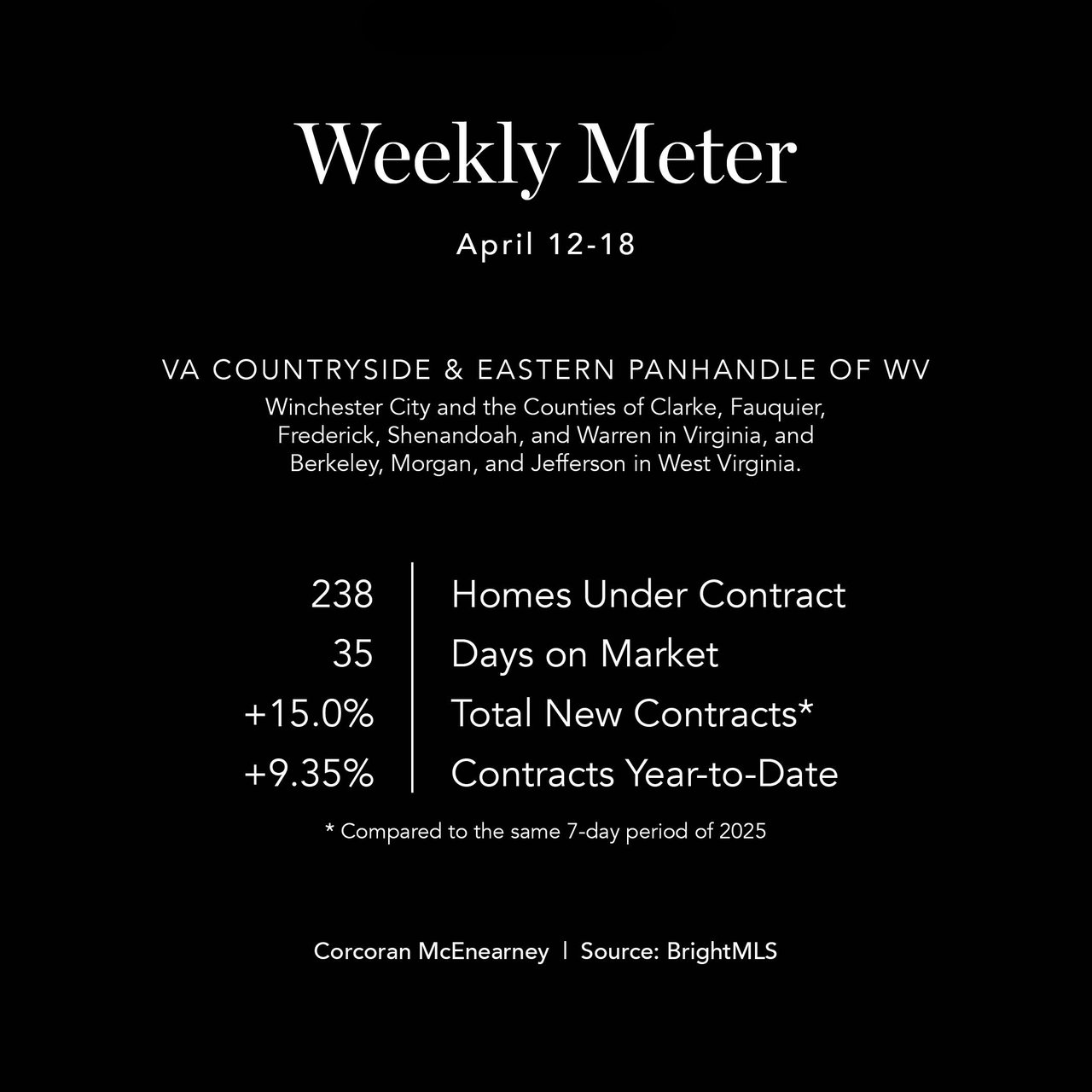 Shenandoah, Warren, Clarke, Fauquier, Frederick Counties, Winchester City, and West Virginia.